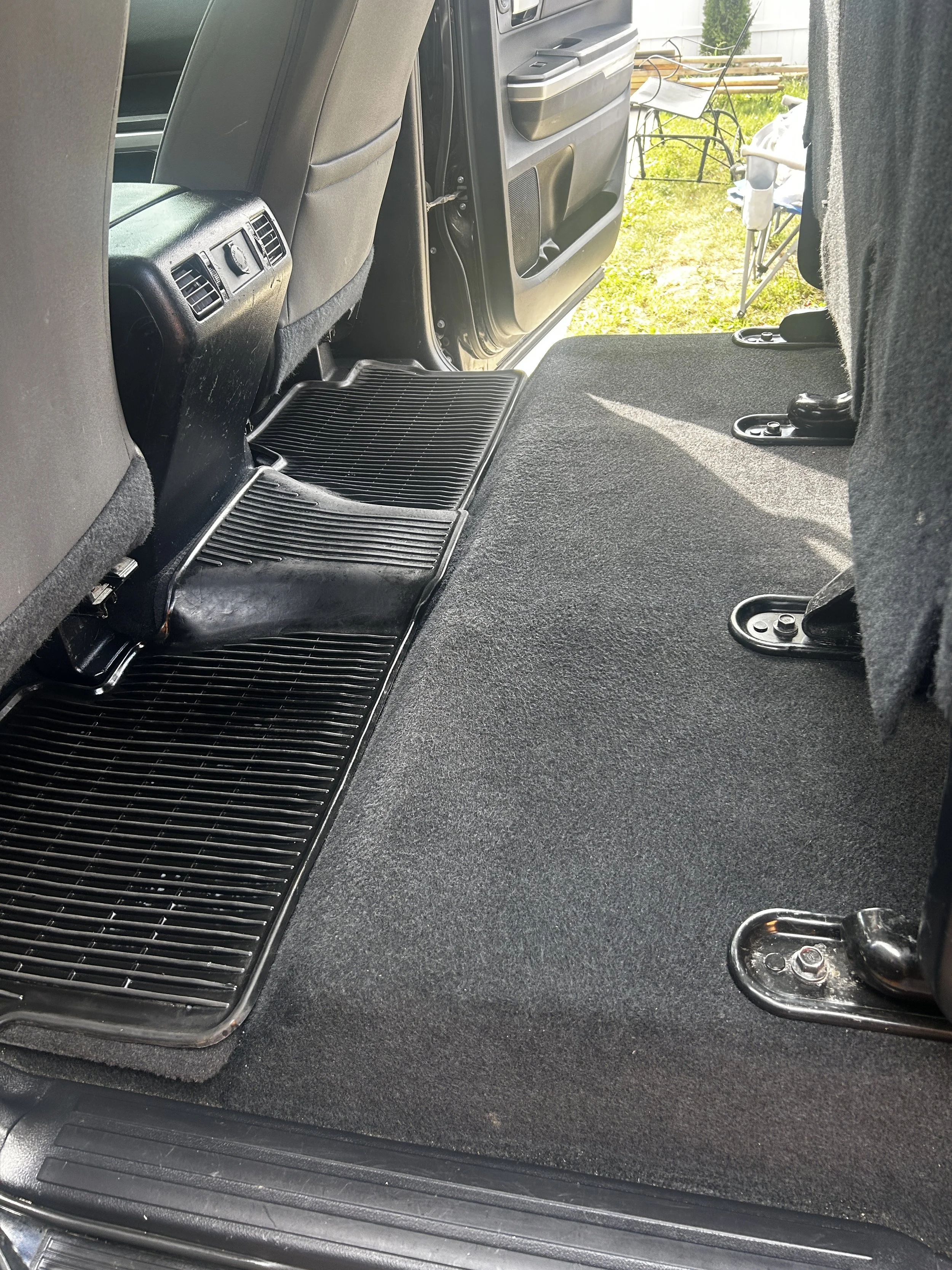 Carpet cleaning requires more patience than most people expect. Spray a light amount of cleaner, scrub gently, and extract thoroughly. Cleveland drivers deal with one of the biggest interior threats in the country: road salt. Salt stains seep deep into carpet fibers and create white crust, odor, and deterioration. Removing them properly isn’t just cosmetic — it preserves your interior long-term. Our Full Interior Detail includes professional water extraction to handle even the toughest carpet problems.
